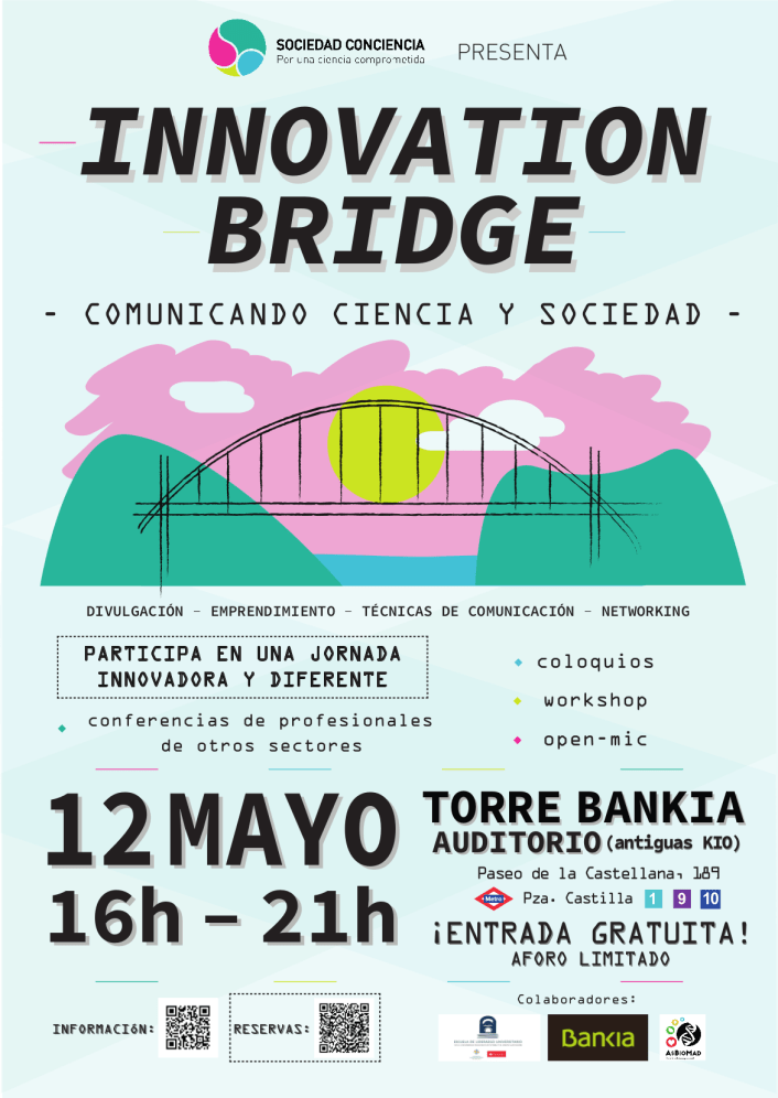 Evenbrite: Innovation Bridge: comunicando ciencia y sociedad (https://www.eventbrite.es/e/innovation-bridge-comunicando-ciencia-y-sociedad-tickets-33561033956?aff=es2)