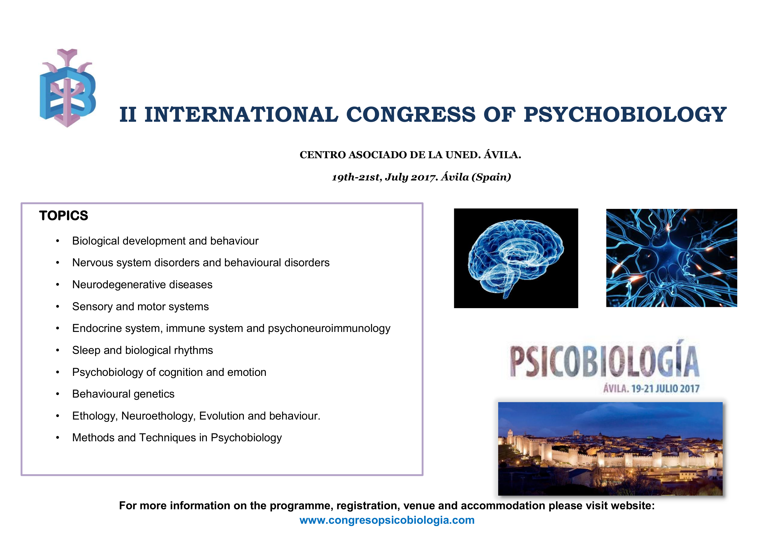 II International Congress of Psychobiology SEPEX / 16 mayo, 2017 http://www.congresopsicobiologia.com/